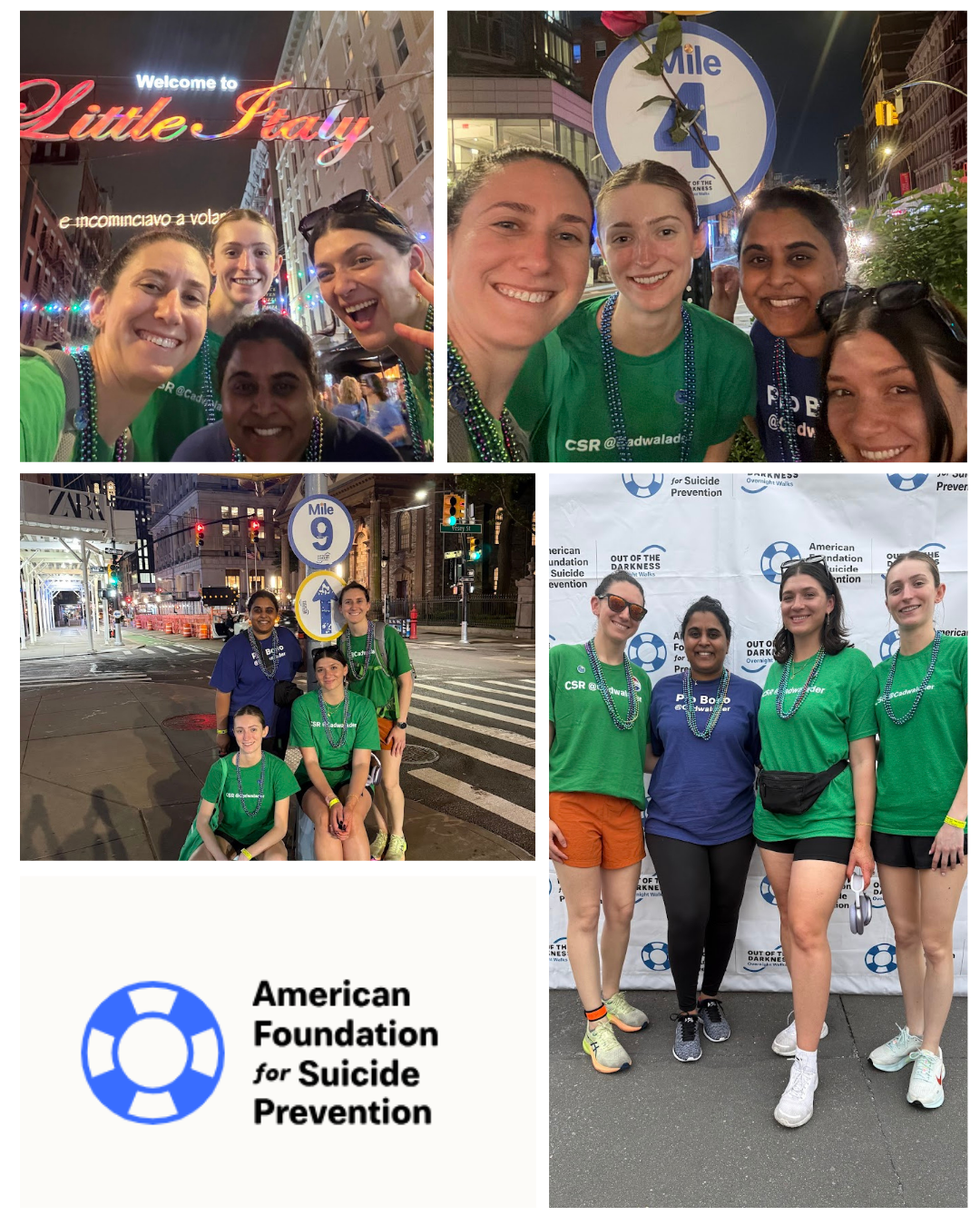 In June, four members of our Cadwalader community participated in the American Foundation for Suicide Prevention’s (AFSP) Overnight Walk in New York City—a powerful 16-mile journey through the night dedicated to raising awareness and support for suicide prevention.