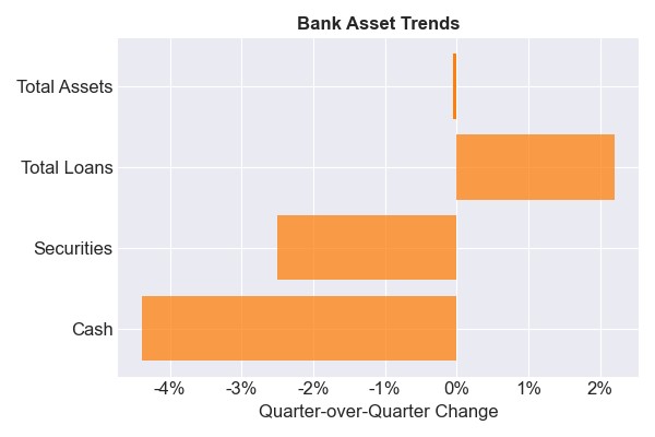 Asset trends. Bank balance sheets are tilting towards loans, with positive growth in this category, while securities and cash holdings are moving lower. We expect this trend to continue as banks reposition the asset side of the balance sheet to keep track with rising liability costs.