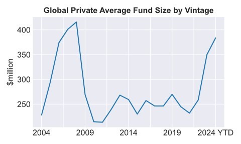 Resilient fundraising benefited a limited number of sponsors. Average fund size returned to pre-GFC highs. The YTD average fund size of $384 million illustrated the challenge for first-time sponsors or strategy specialists to get a fund off the ground.