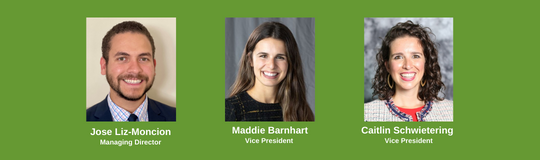 Bank of America's Subscription Finance Group has made some recent promotions, including: Jose Liz-Moncion was promoted to Managing Director, and Maddie Barnhart and Caitlin Schwietering were promoted to Vice President. Congrats to all!