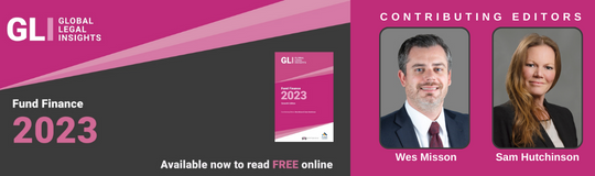 Global Legal Group this week launched the 2023 edition of Fund Finance 2023 (aka the “Pink Book"), the leading legal treatise for the fund finance industry. Now in its seventh edition, this unique publication provides in-depth analysis of market conditions, regulations and laws, covering 19 key jurisdictions, with 27 expert analysis chapters providing in-depth and up-to-date analysis. As contributing editors, Cadwalader’s Wes Misson and Sam Hutchinson co-authored the Preface and sat down for an interview with publisher James Strode to discuss this latest edition and the year ahead in finance.