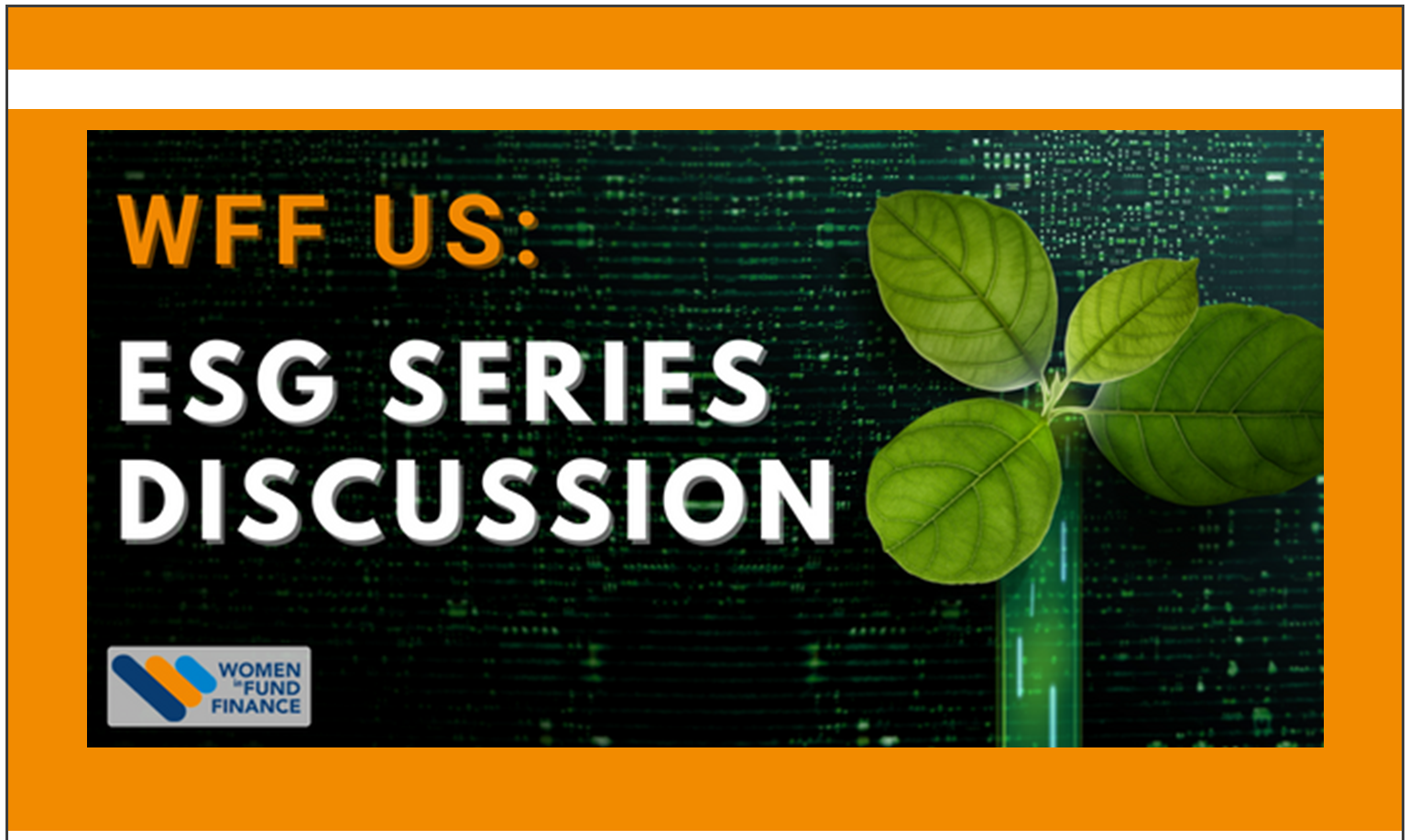 Women in Fund Finance (WFF) U.S. is hosting a virtual panel on “Navigating ESG Communications: Strategies for Challenging Times” on Tuesday, February 28 at 11 a.m. EST. The panel will focus on ESG data, disclosure, and ratings/scoring and will explore how different types of data may be used for risk analysis/mitigation, strategic planning/value creation and stakeholder engagement/communication. Click here to register and for the speakers list.