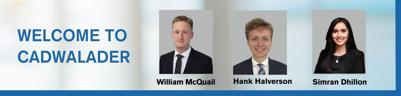 Please join us in welcoming William McQuail, Hank Halverson and Simran Dhillon Sadhar to Cadwalader!
