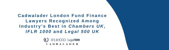 Cadwalader’s Fund Finance practice and lawyers have once again been recognized among the industry’s best in the latest Chambers UK 2026, IFLR1000 Western Europe 2025, and Legal 500 UK 2026 guides.