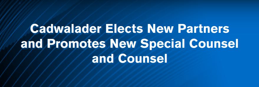 “We’re thrilled to share this news,” said Pat Quinn, Cadwalader’s Co-Managing Partner. “The past year has been one of the most successful in our firm’s storied 233-year history. Our strong performance is thanks to the extraordinary talent that Cadwalader has long been known for. Our new partners, special counsel and counsel will carry forward this legacy.”