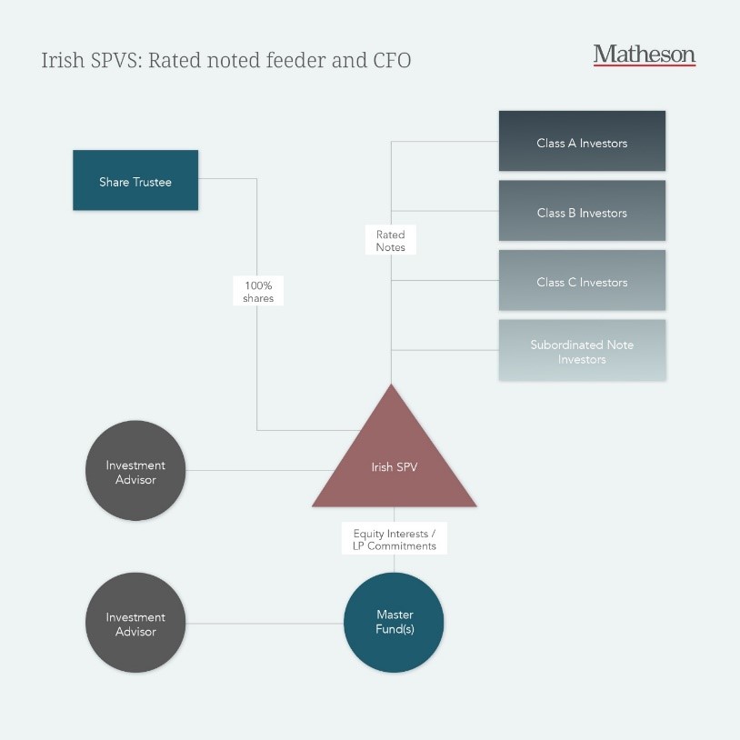 RNFs feature regularly in US and European fund structures and, during the course of 2025 (and into 2026), we have seen a number of fund managers look to establish RNFs in Ireland as designated activity companies that avail of Ireland’s securitisation regime (Irish SPVs). Irish SPVs are entities that are widely used in the European securitisation markets and are utilised across a number of mainstream and esoteric asset classes (eg, Irish SPVs are widely used across the European CLO market). Similarly, Irish SPVs are ideal issuer entities for CFOs for the same reasons as they are used as RNFs.