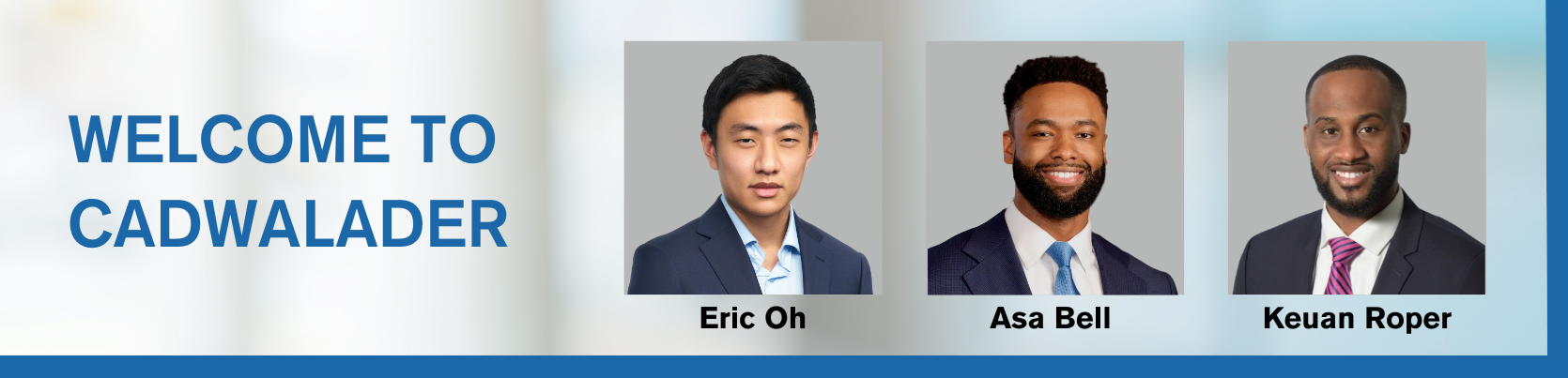 Please join us in welcoming Asa Bell, Eric Oh, and Keuan Roper to Cadwalader!