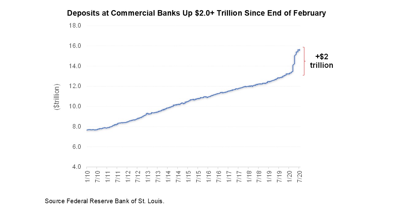 COVID stimulus programs have translated into the greatest buildup in bank deposits in U.S. history.