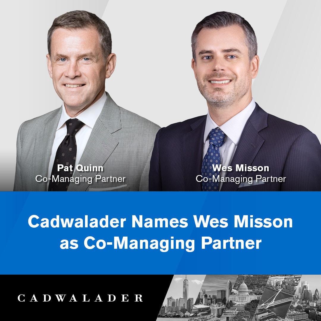 We are proud to share that Cadwalader has elevated Wesley Misson to be the firm’s Co-Managing Partner along with Pat Quinn, who has served in the role since 2015.