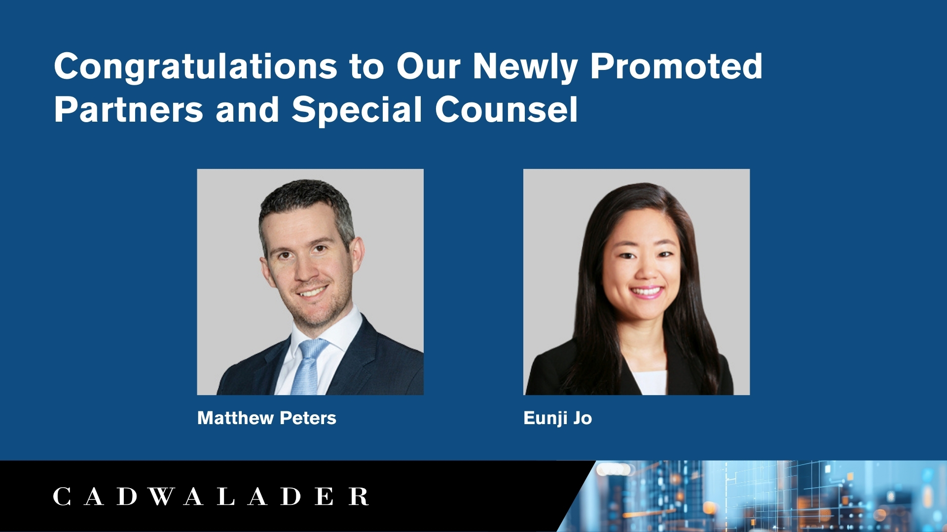 Cadwalader has elevated 24 lawyers to partner, special counsel and counsel, effective January 1, 2026.