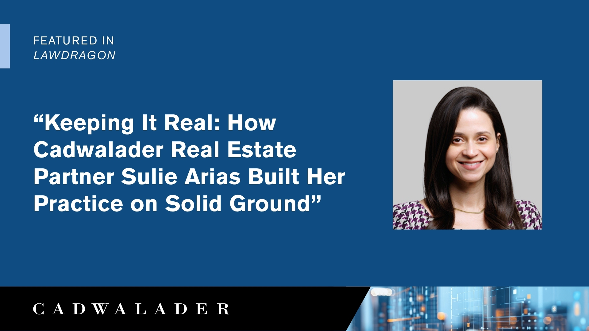 Cadwalader partner Sulie Arias is profiled in Lawdragon for building a standout real estate finance practice through determination, mentorship and a grounded approach to the law.
